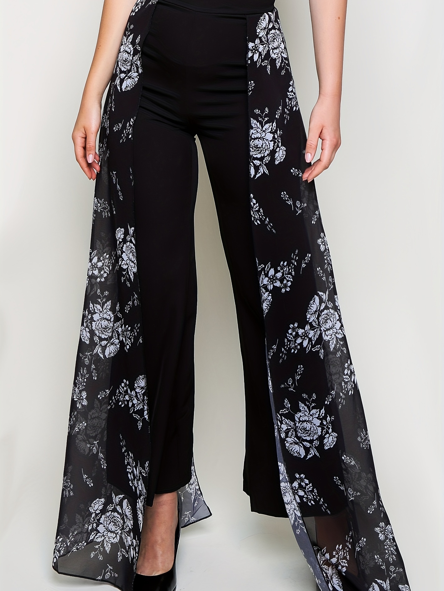 Women's Fashion Vintage High Waist Retro Chic Floral Print Flare Leg Pants