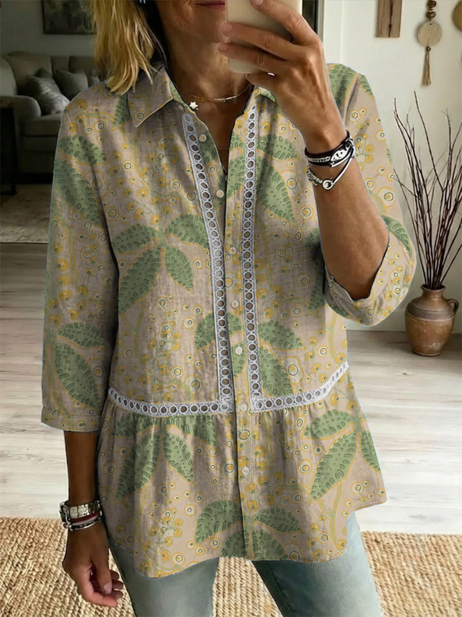 Women's Field Flower Art Print Casual Lapel Cotton Shirt