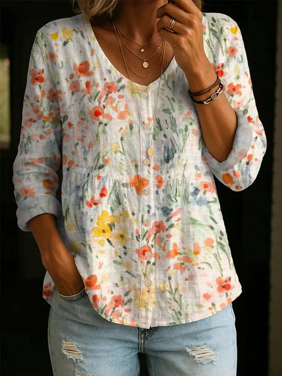 Women's Floral Pattern Art Print Casual Cotton Shirt – lolonb