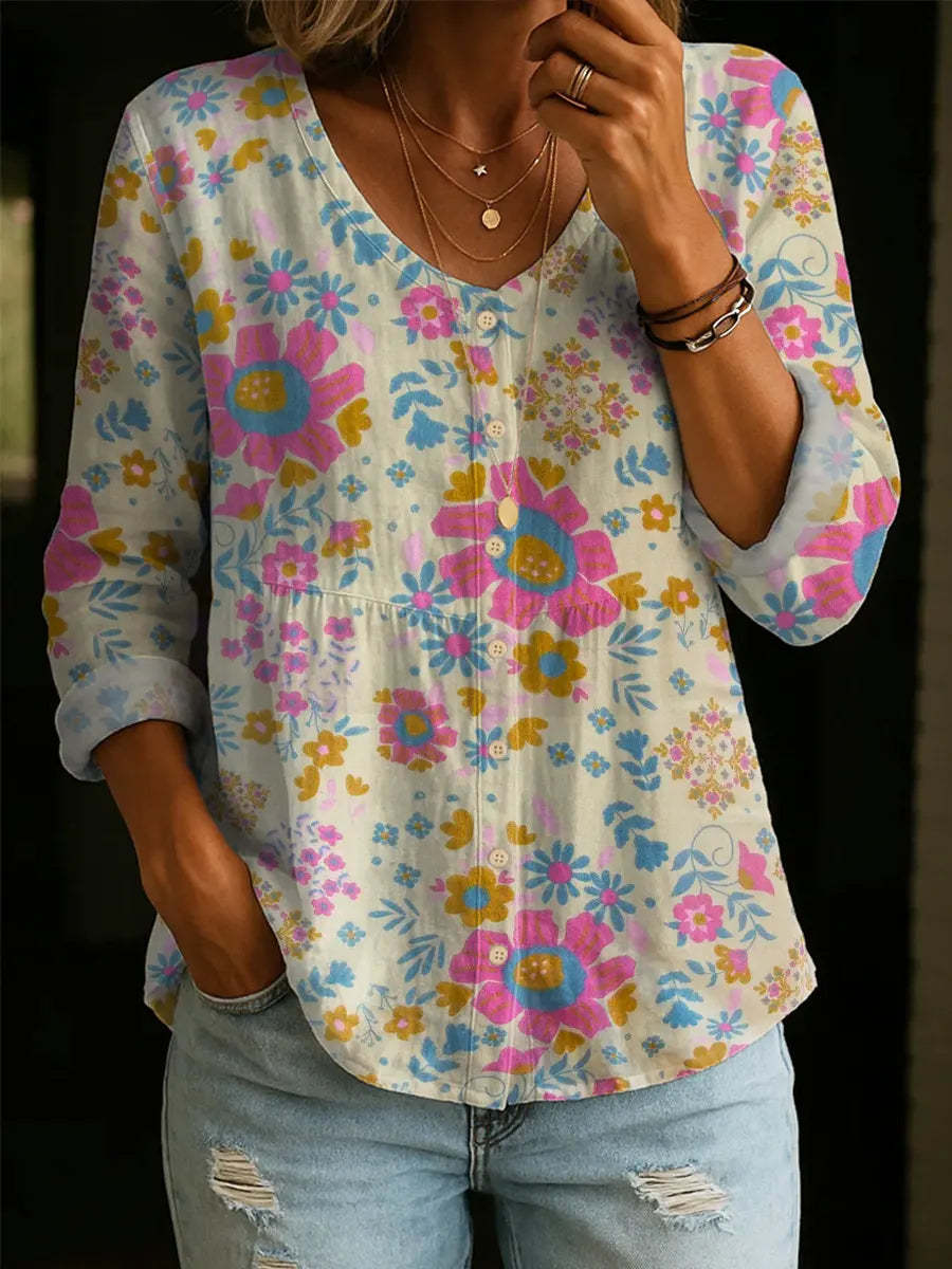 Women's Floral Pattern Art Print Casual Cotton Shirt – lolonb
