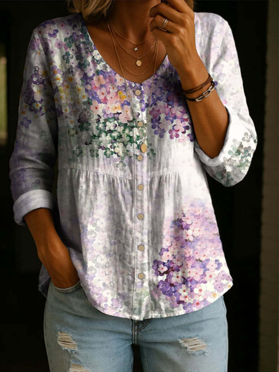 Women's Floral Pattern Art Print Casual Cotton Shirt – lolonb