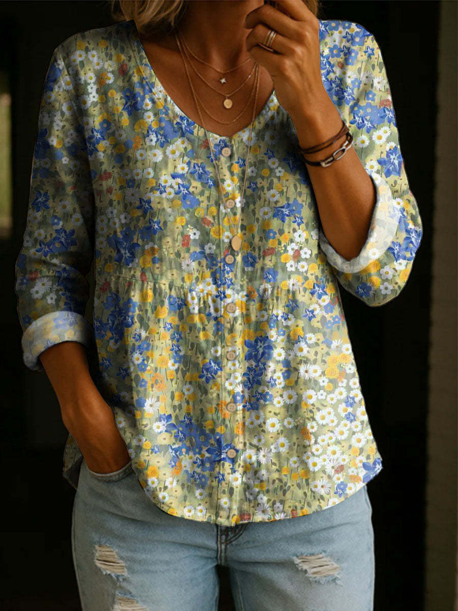 Women's Floral Pattern Art Print Casual Cotton Shirt – lolonb