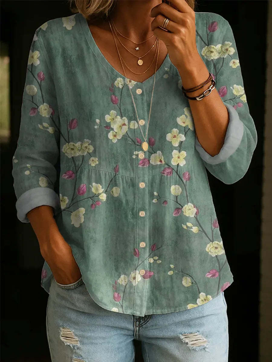 Women's Floral Pattern Art Print Casual Cotton Shirt – lolonb