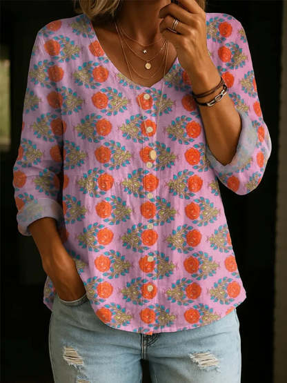 Women's Floral Pattern Art Print Casual Cotton Shirt – lolonb
