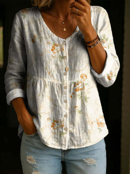 Women's Floral Pattern Art Print Casual Cotton Shirt – lolonb