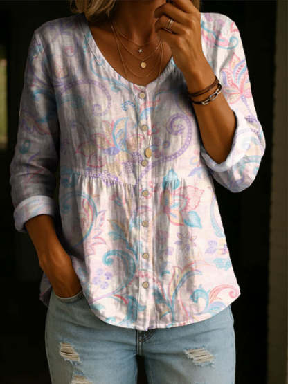Women's Floral Pattern Art Print Casual Cotton Shirt