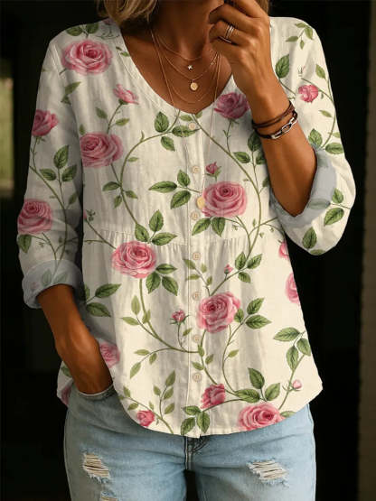 Women's Floral Pattern Art Print Casual Cotton Shirt – lolonb