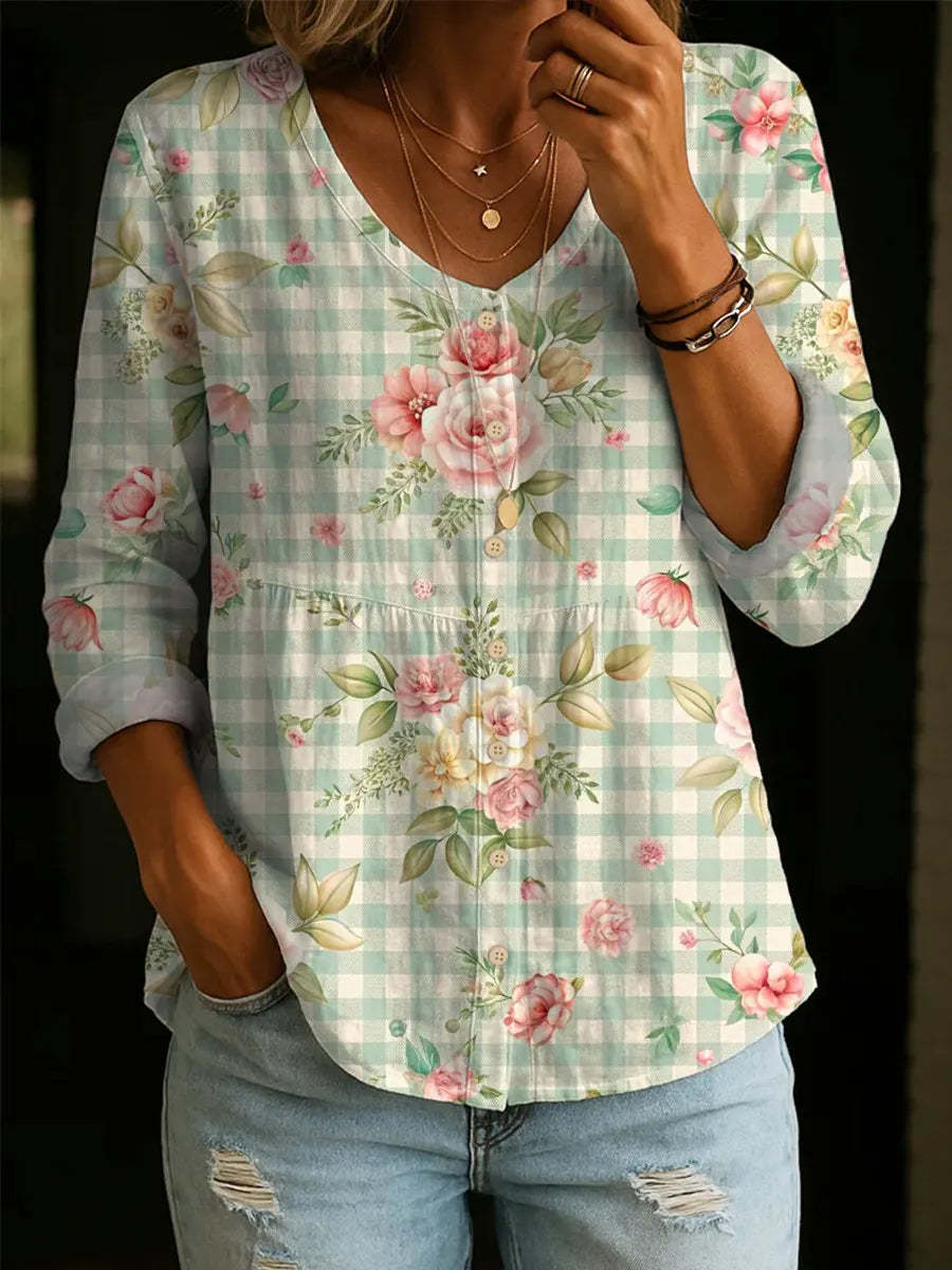 Women's Floral Pattern Art Print Casual Cotton Shirt – lolonb