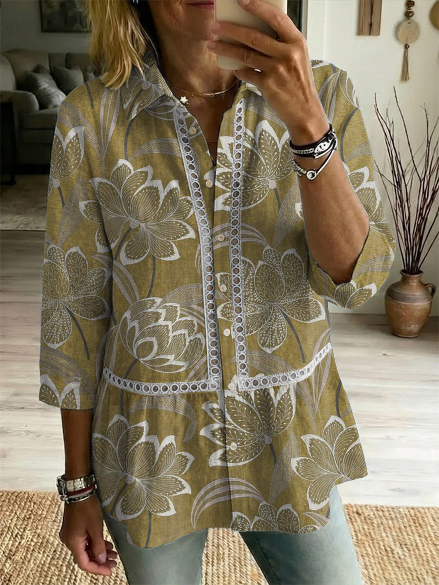 Women's Flower Art Print Casual Lapel Cotton Shirt – lolonb