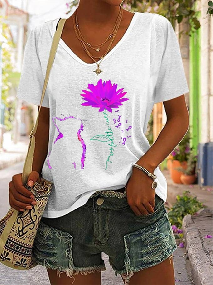 Women's For The Cure Dementia Alzheimer's Disease Awareness Print V-Neck T-Shirt