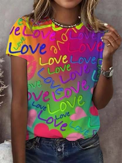 Women's Gay and Lesbian Month Love Heart Graffiti Print Short Sleeve T-shirt