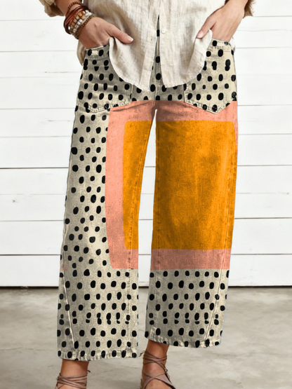 Women's Geometry Art Print Casual Cotton Trousers With Pockets – lolonb