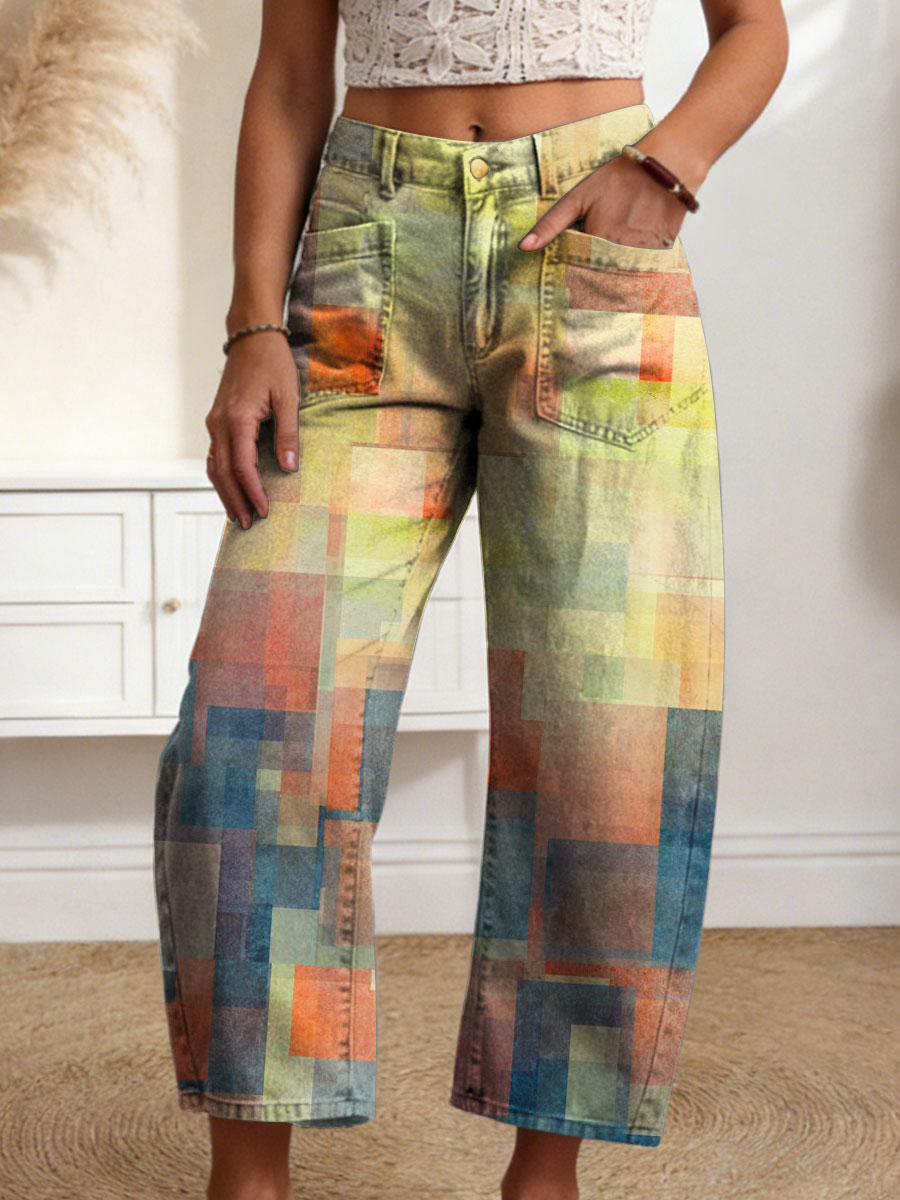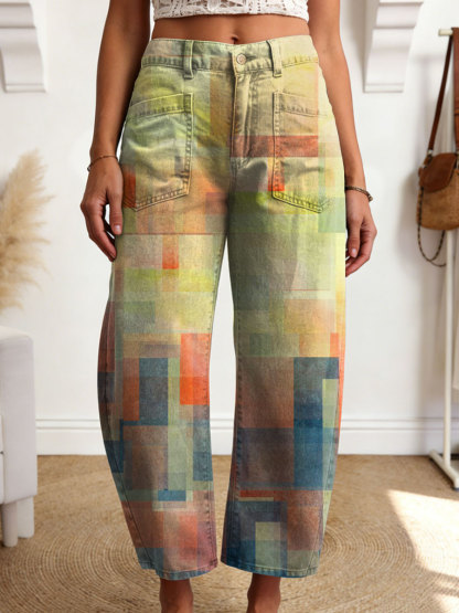 Women's Geometry Color Gradient Art Print Casual Cotton Trousers With Pockets – lolonb