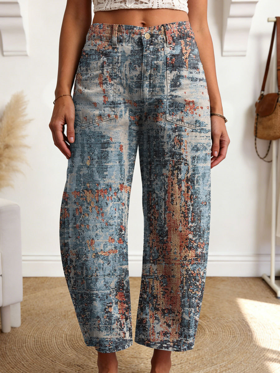Women's Geometry Color Gradient Art Print Casual Cotton Trousers With Pockets – lolonb