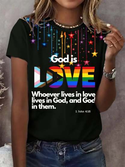 Women's God Is Love Print Casual T-Shirt