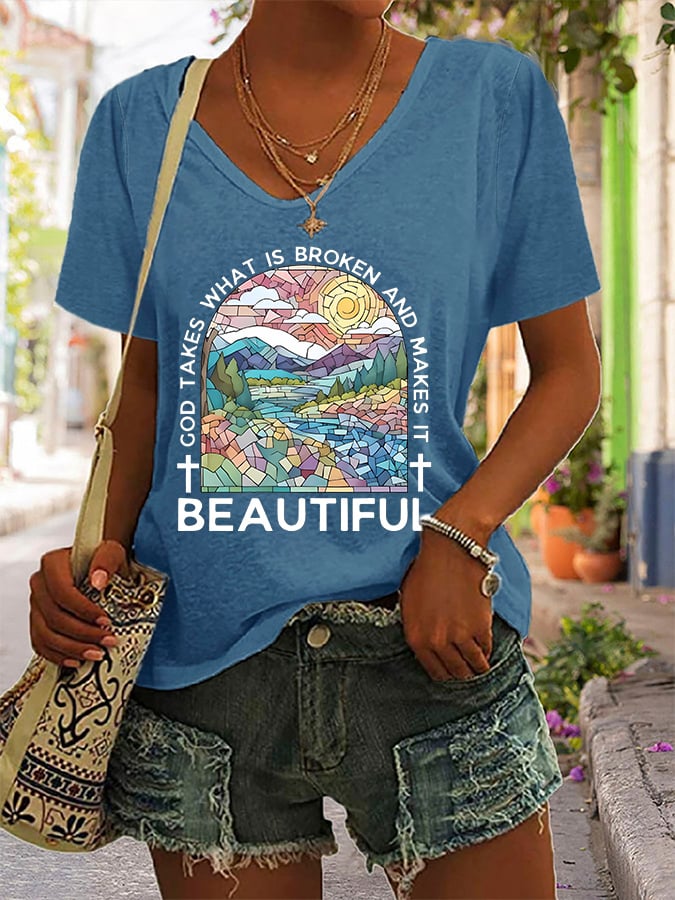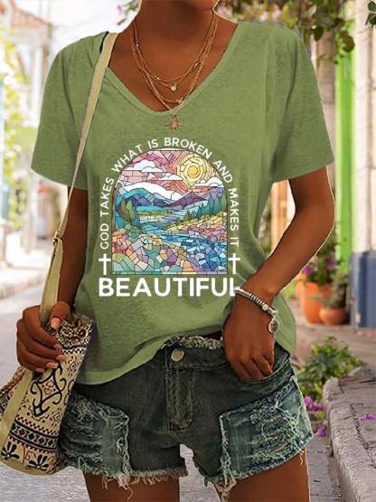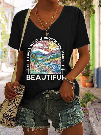 Women's God Makes What Is Broken Beautiful Printed Short-Sleeved T-Shirt