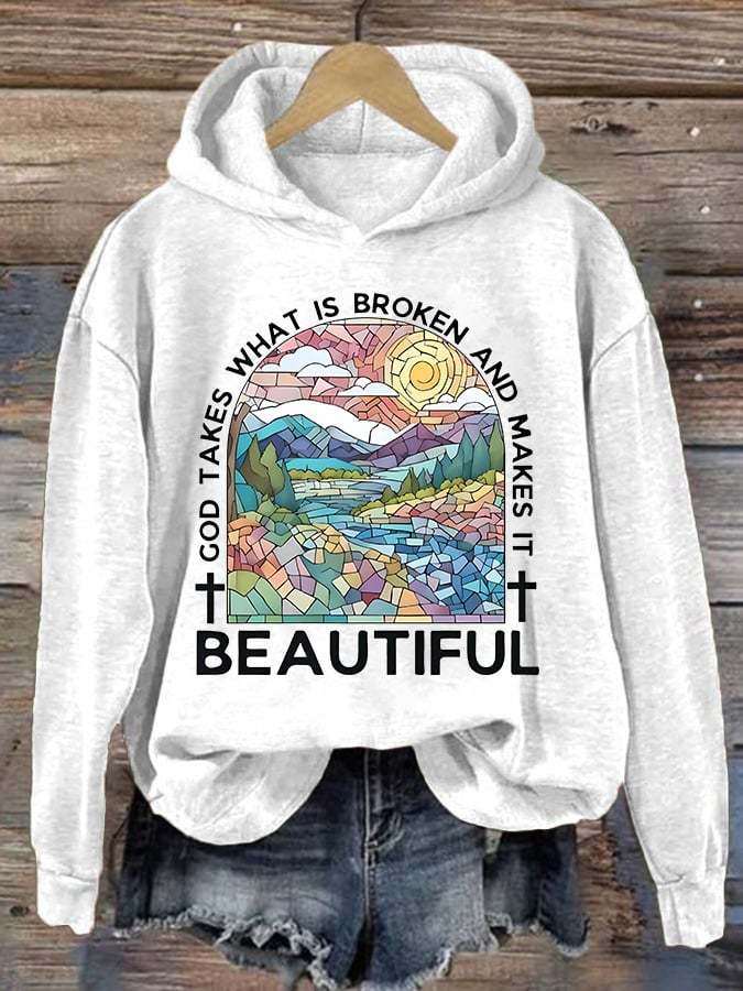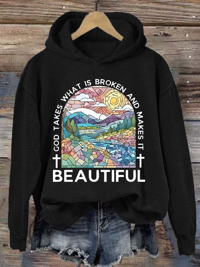 Women's God Takes What is Broken And Makes It BeauTiful Print Sweatshirt