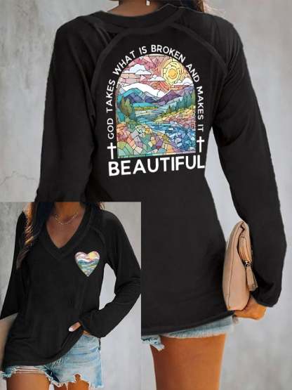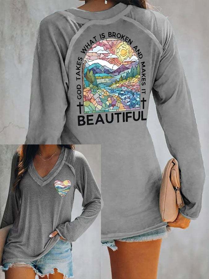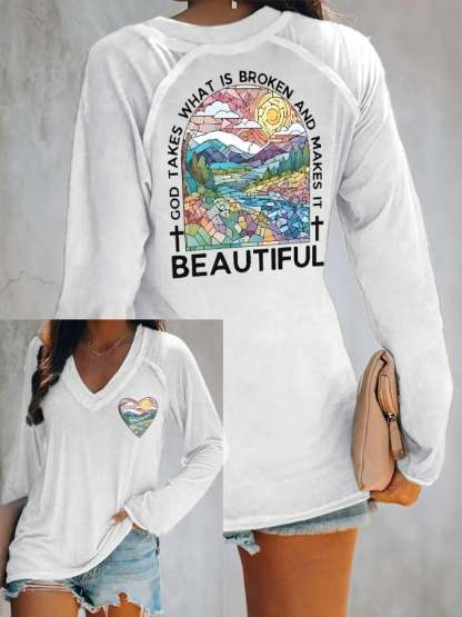 Women's God Takes What is Broken And Makes It BeauTiful V Neck T-Shirt