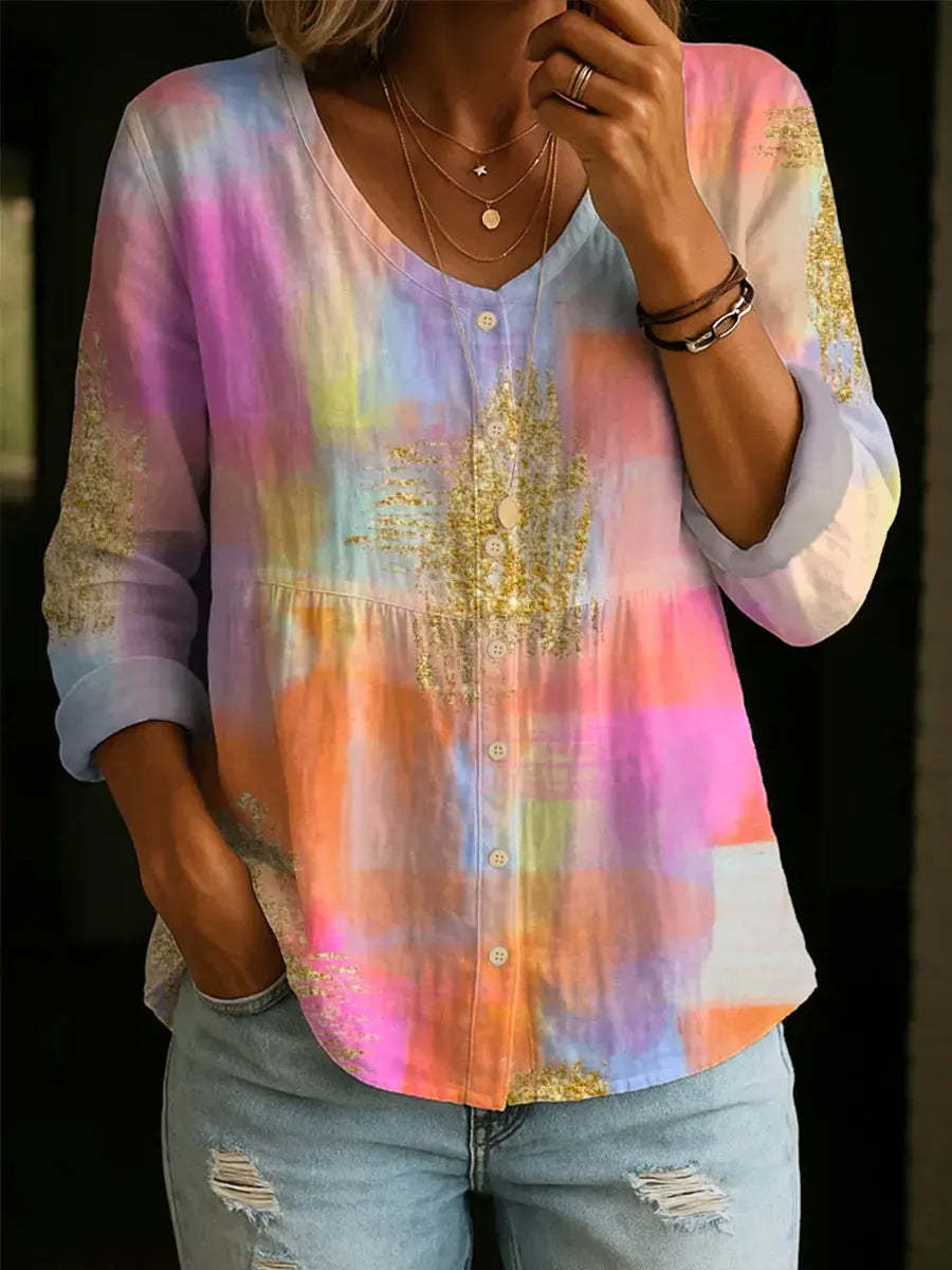 Women's Gradient Pattern Art Print Casual Cotton Shirt – lolonb