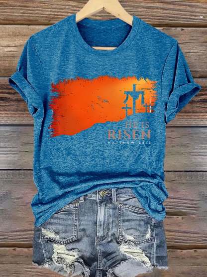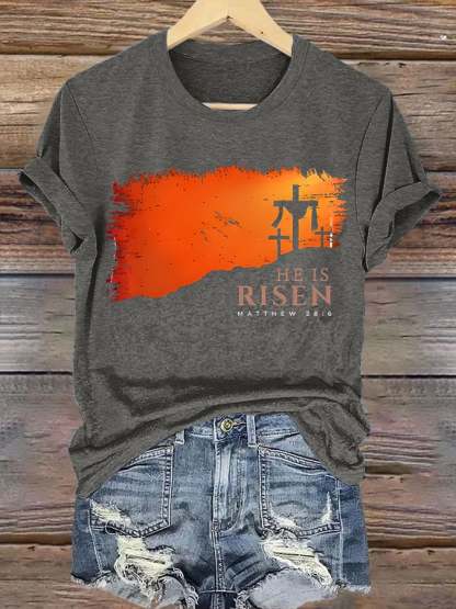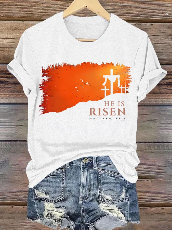 Women's He is Risen Matthew 28:6 Print T-shirt