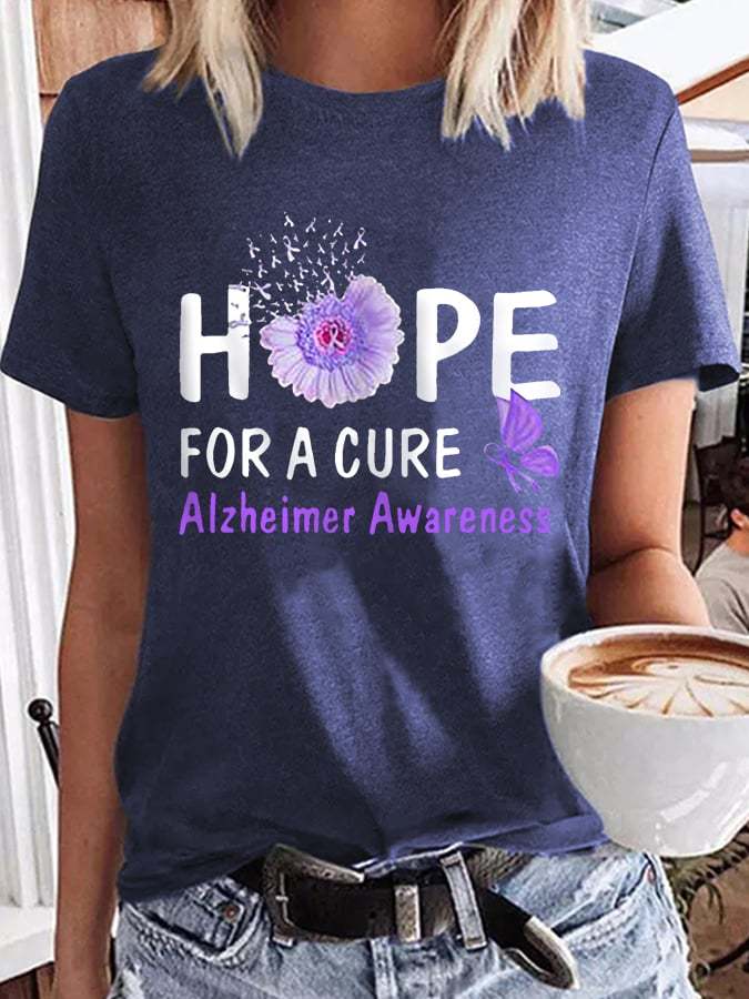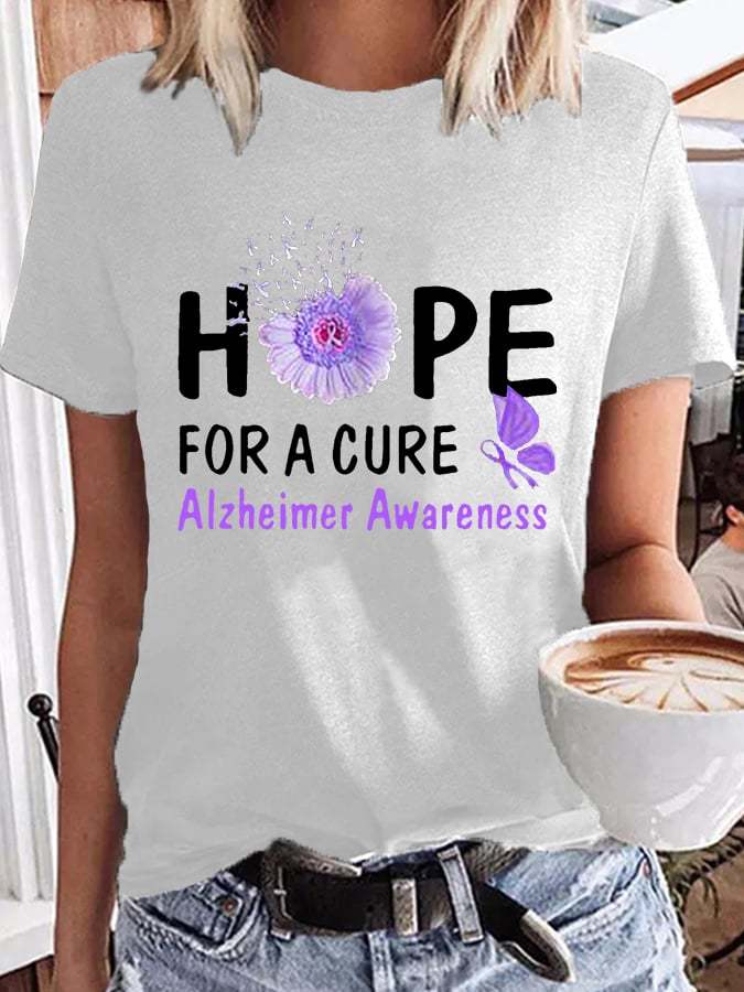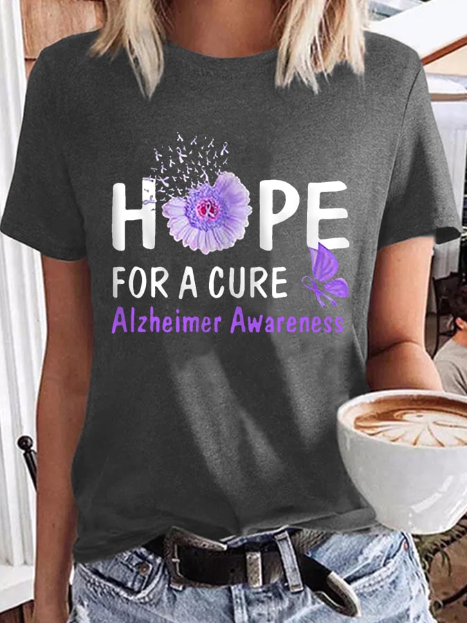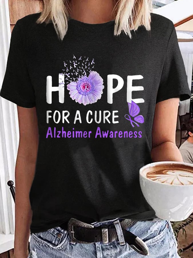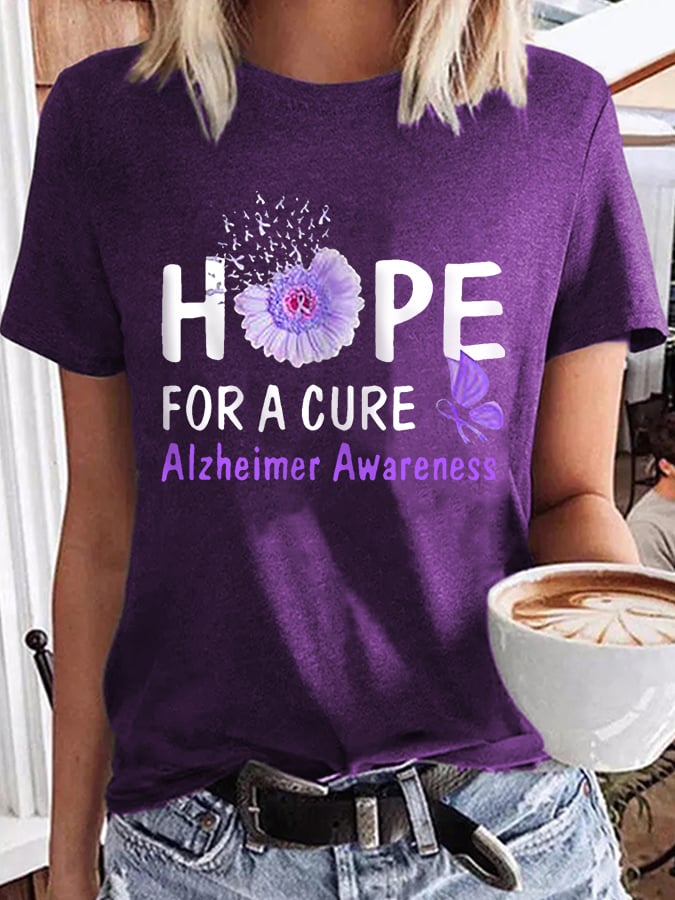 Women's Hope For A Cure Sunflower Purple Ribbon Alzheimer's Awareness Fighter Supporter Tee