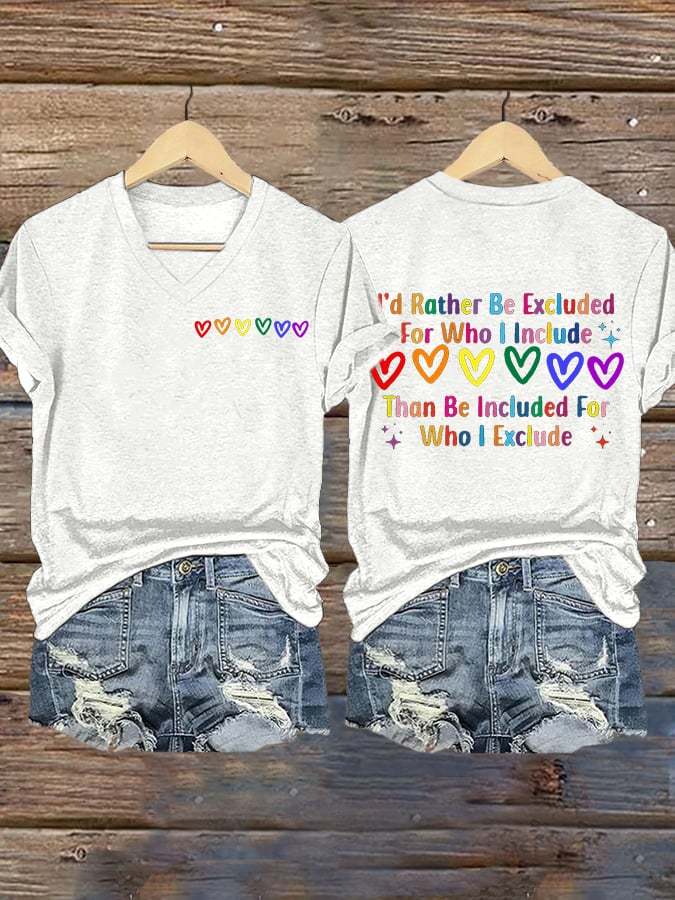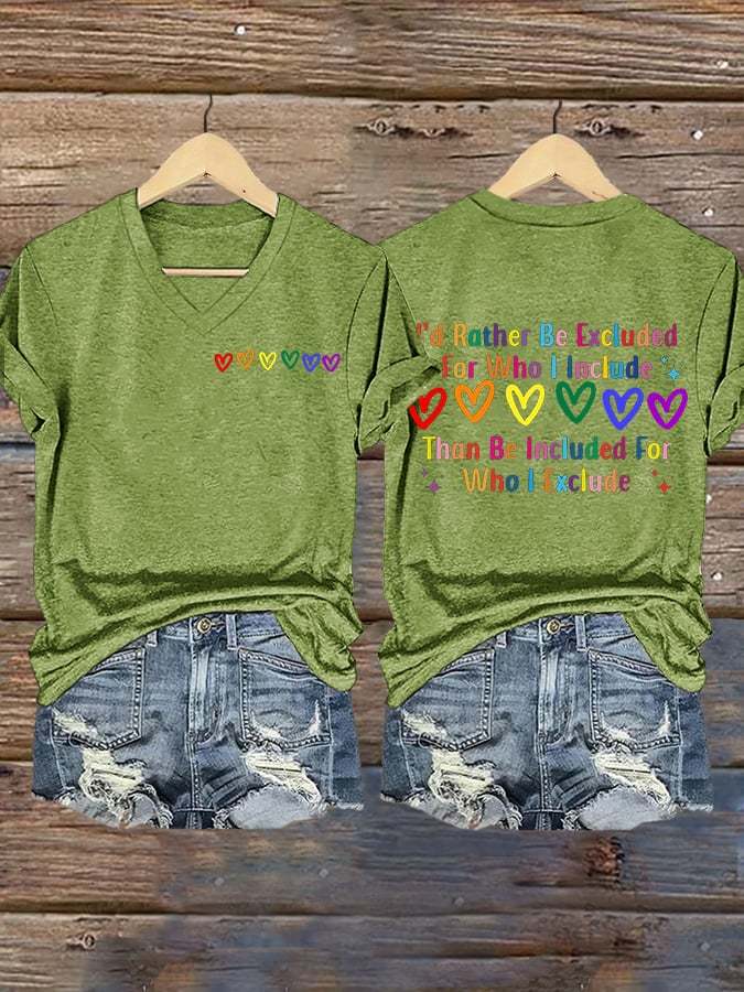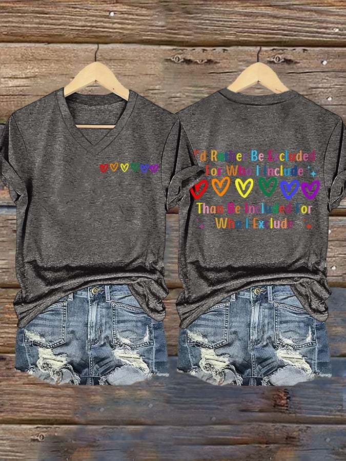 Women's I’d Rather Be Excluded For Who I Include LGBTQ Support Printed T-shirt