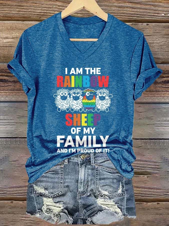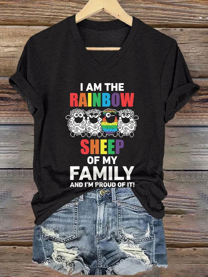 Women's I'm The Rainbow Sheep In The Family And I'm Proud Of It V-Neck Printed T-Shirt Top