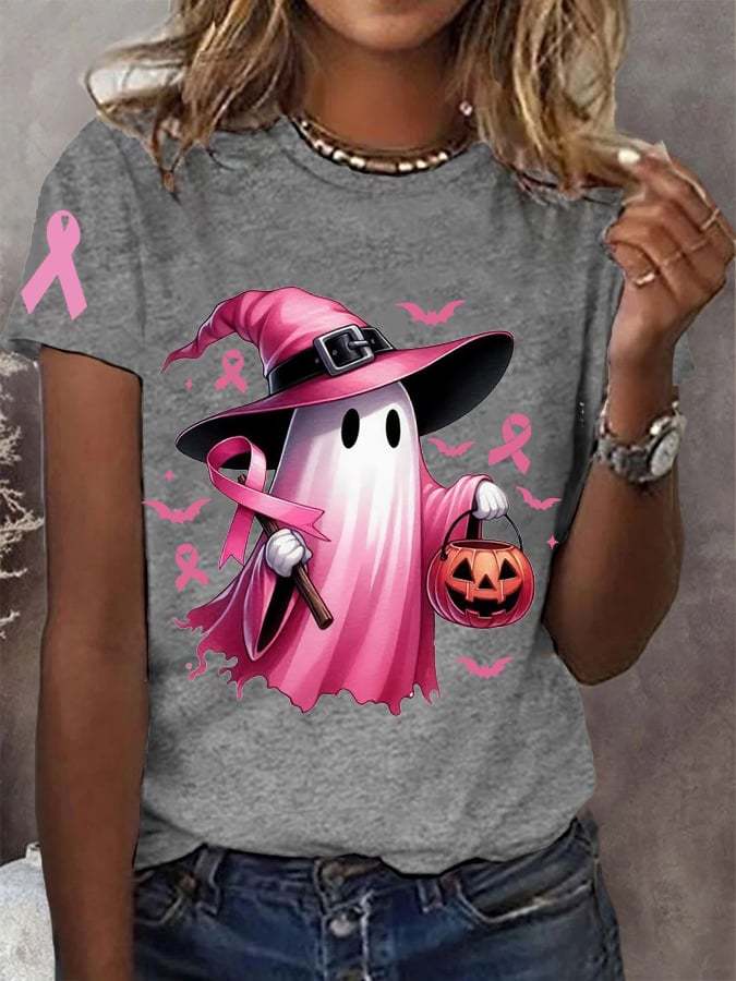 Women's In October We Wear Pink Halloween Ghost Breast Cancer Awareness Tee