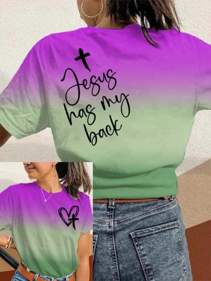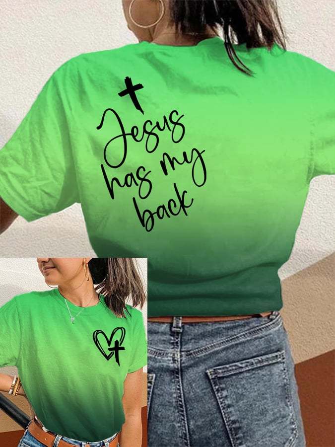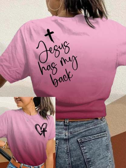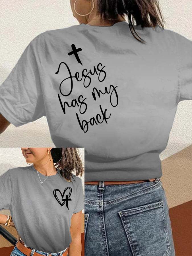 Women's Jesus Has My Back Print Round Neck T-Shirt