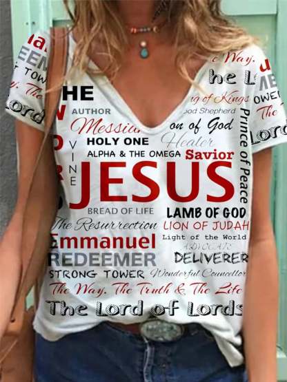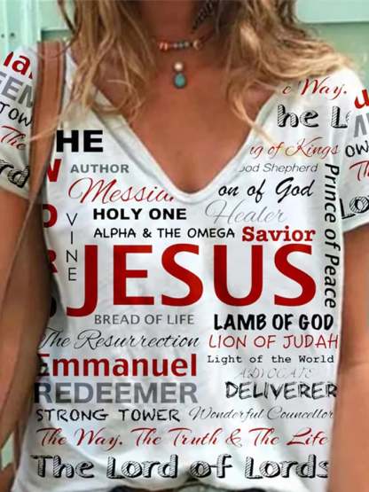 Women's Jesus Print Casual Tee