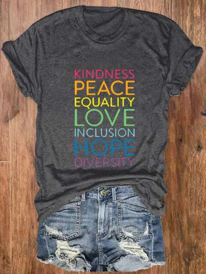 Women's Kindness Peace Equality Love Inclusion Hope Diversity Print T-shirt