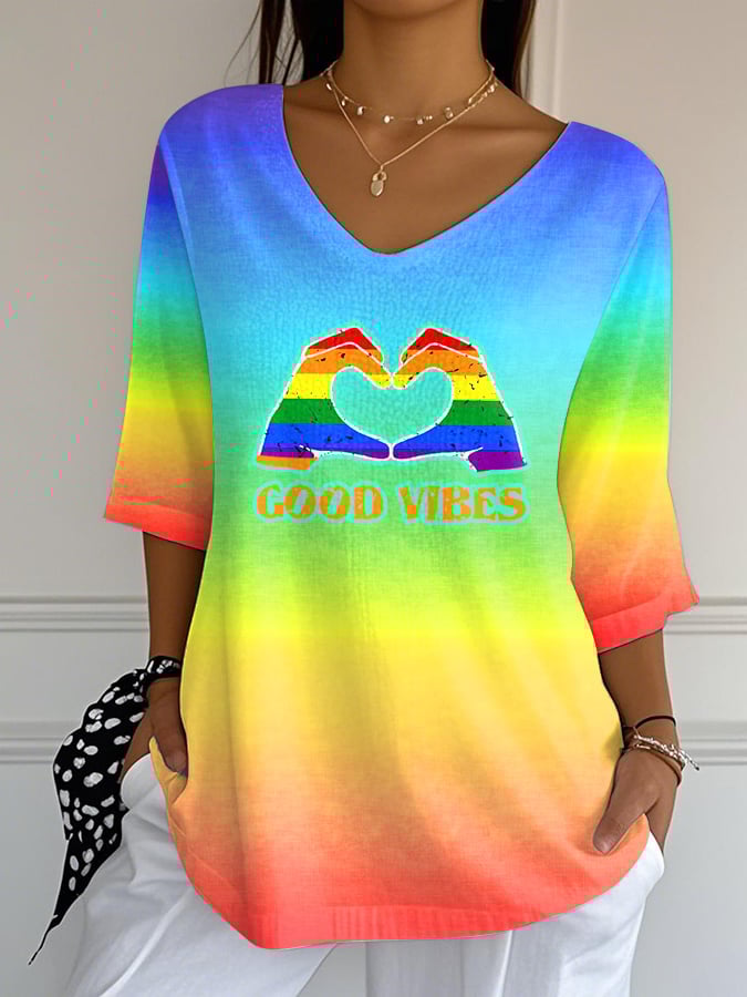 Women's LGBT Good Vibes Print Mid Sleeve T-Shirt