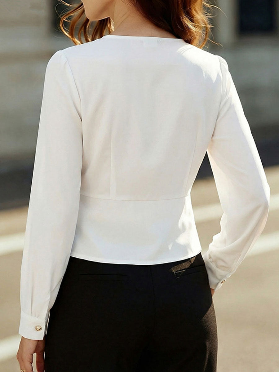 Women's Long-sleeved V-neck Shirt