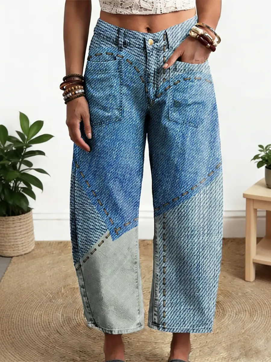 Women's Love Pattern Art Print Casual Cotton Denim Pants