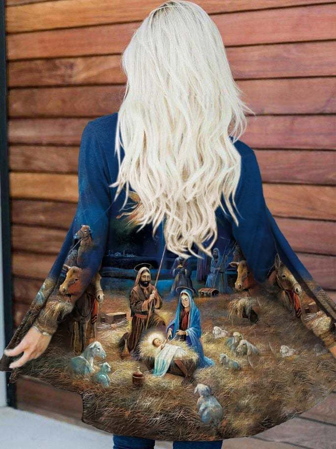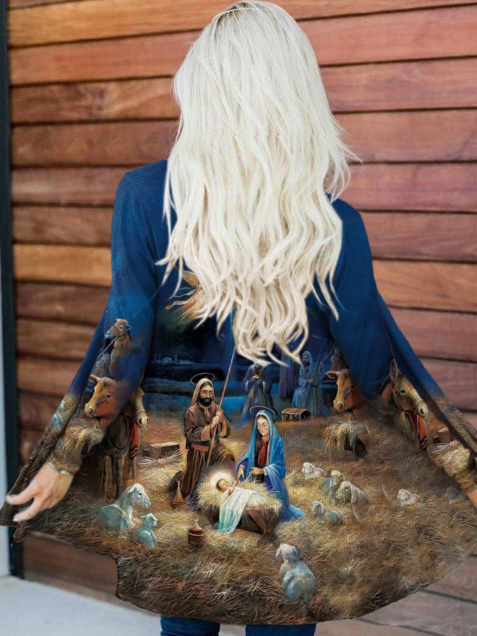 Women's Nativity Print Cardigan