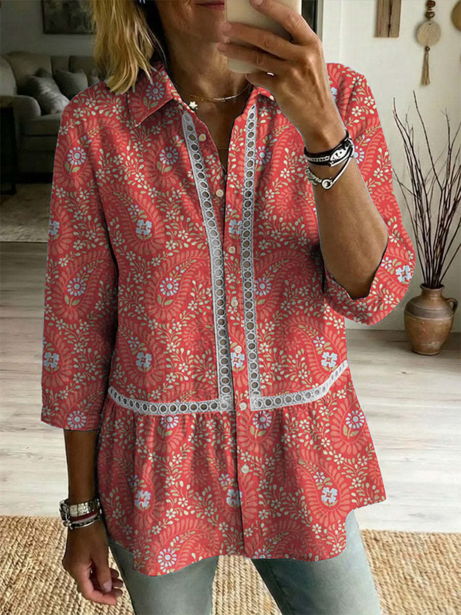 Women's Paisley Art Print Casual Lapel Cotton Shirt