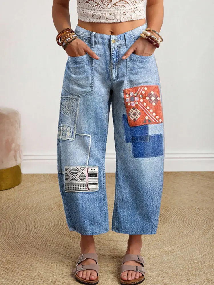 Women's Patchwork Pattern Art Print Jeans – lolonb