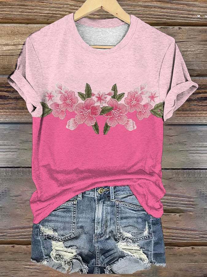 Last Day 49% OffWomen's Pink Flowers Print T-Shirt – lolonb