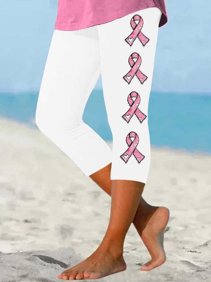 Women's Pink Ribbon Breast Cancer Awareness Warrior Supporter Cropped Leggings