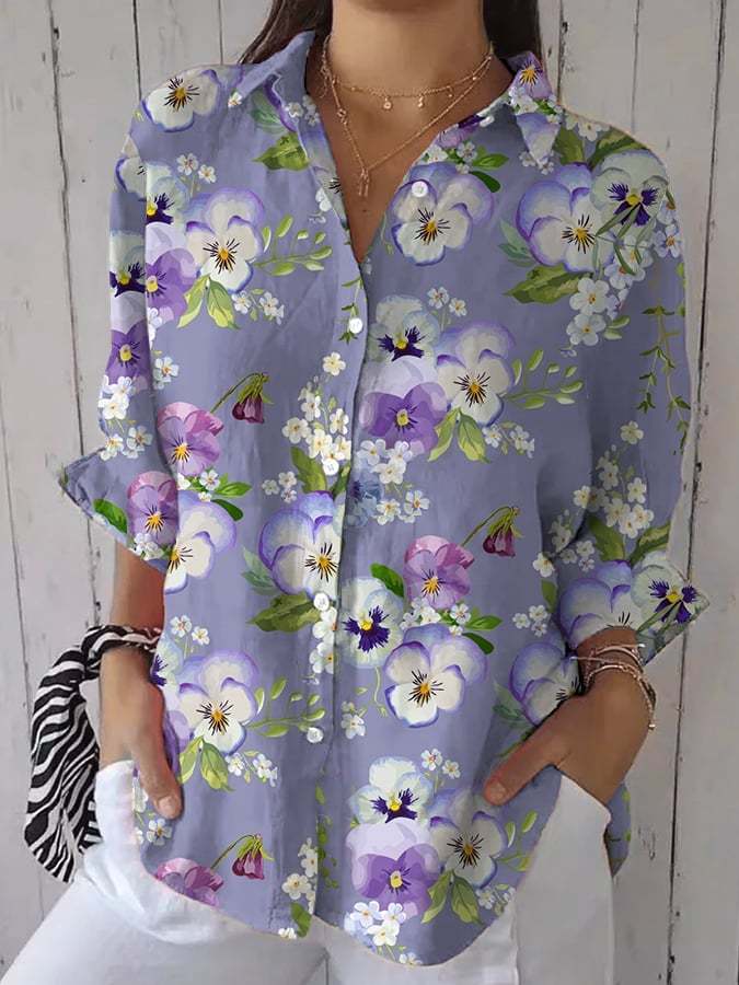 Women's Plants and Flowers Elegant and Beautiful Imitation Cotton and Linen Shirt Tops
