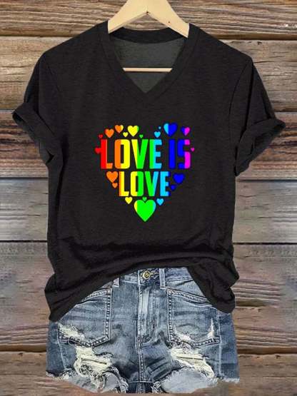 Women's Pride Month Gay Pride Month Love is Love Slogan Print V Neck T-Shirt Top