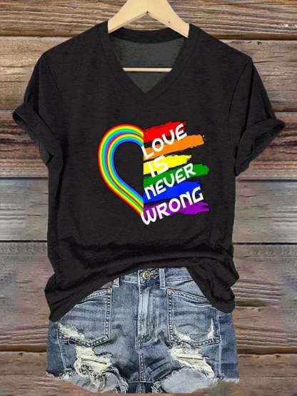 Women's Pride Month Gay Pride Month Love Slogan Print V Neck T-Shirt Top
