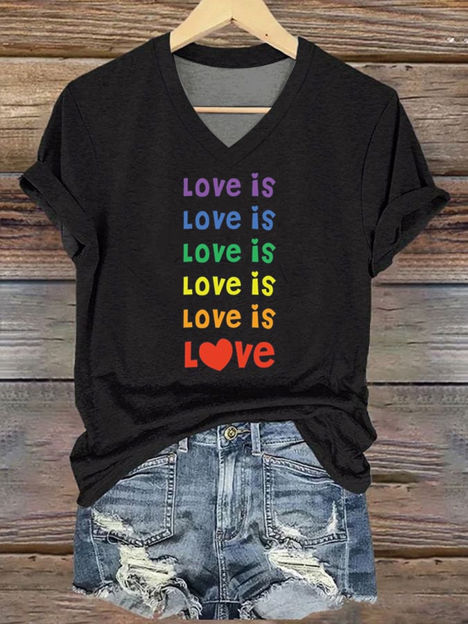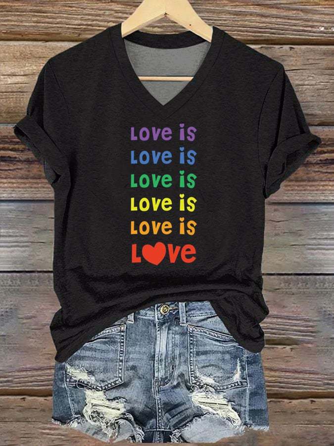 Women's Pride Month Gay Rainbow LOVE IS LOVE V-Neck T-Shirt