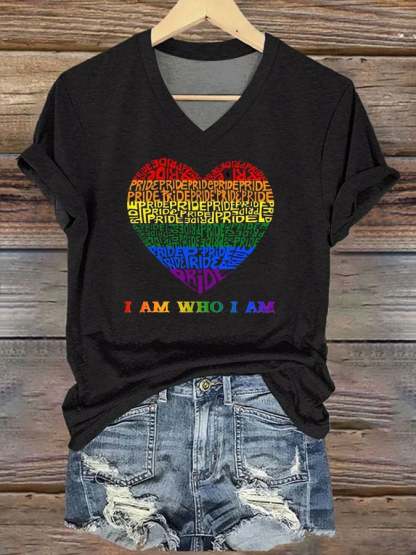 Women's Pride Month I Am Who I Am V Neck Print T-Shirt Top