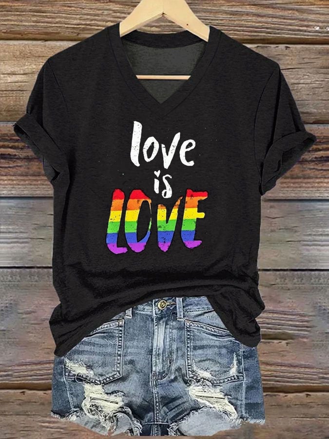 Women's Pride Month Love is Love V Neck T-Shirt Top