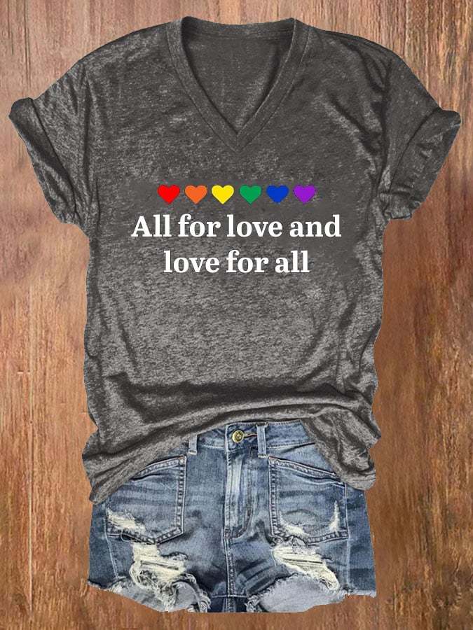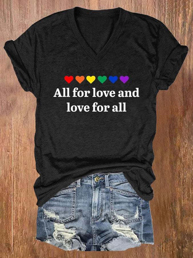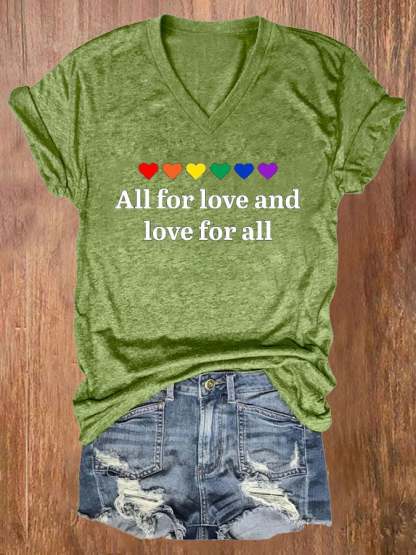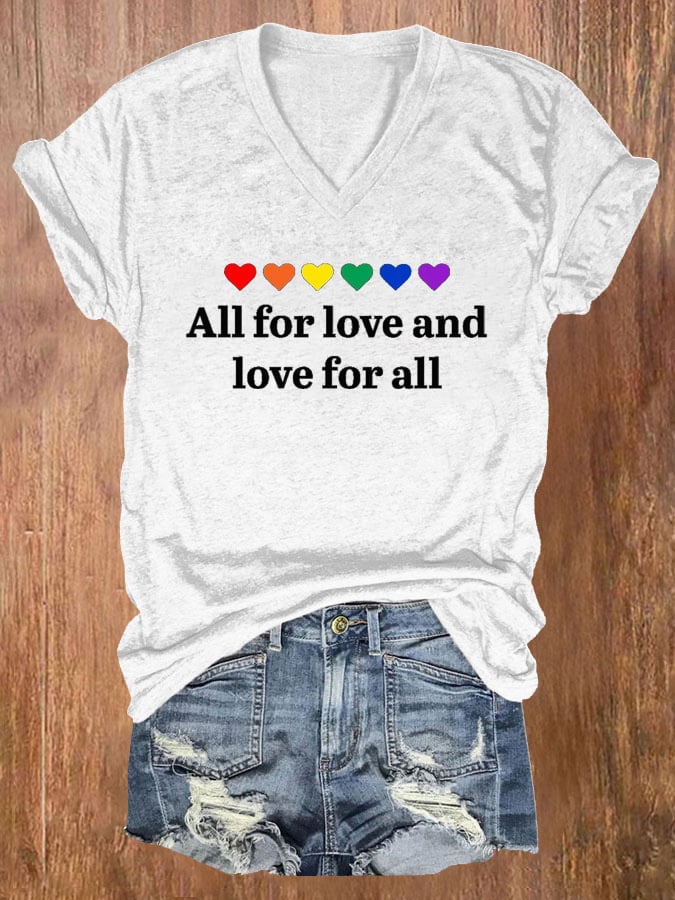 Women's Pride Month Love With All My Heart V Neck T-Shirt Top