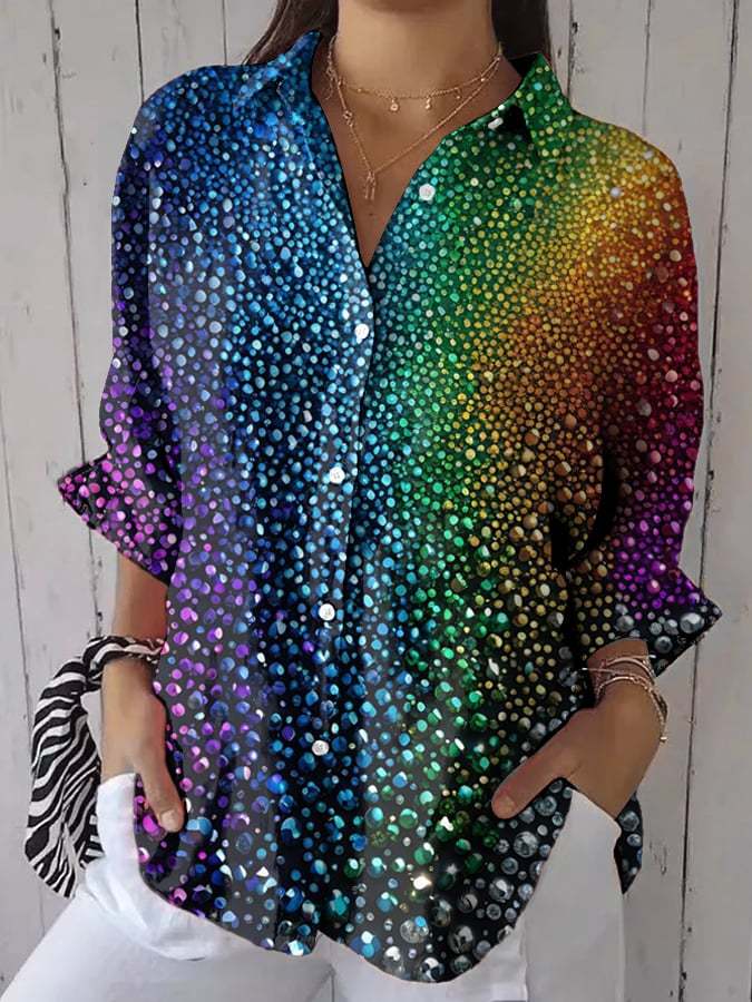 Women's Pride Month Print Casual Lapel Shirt
