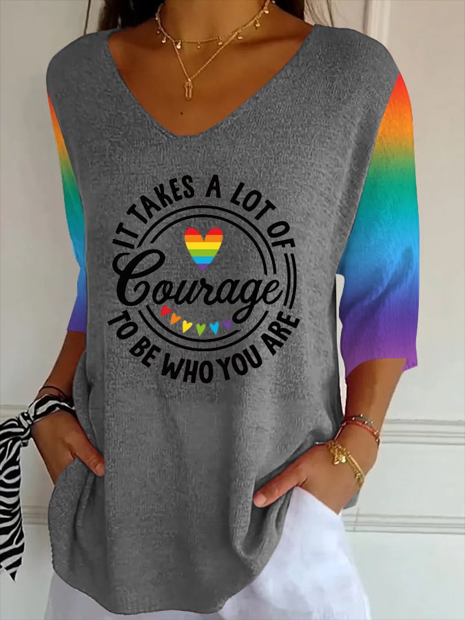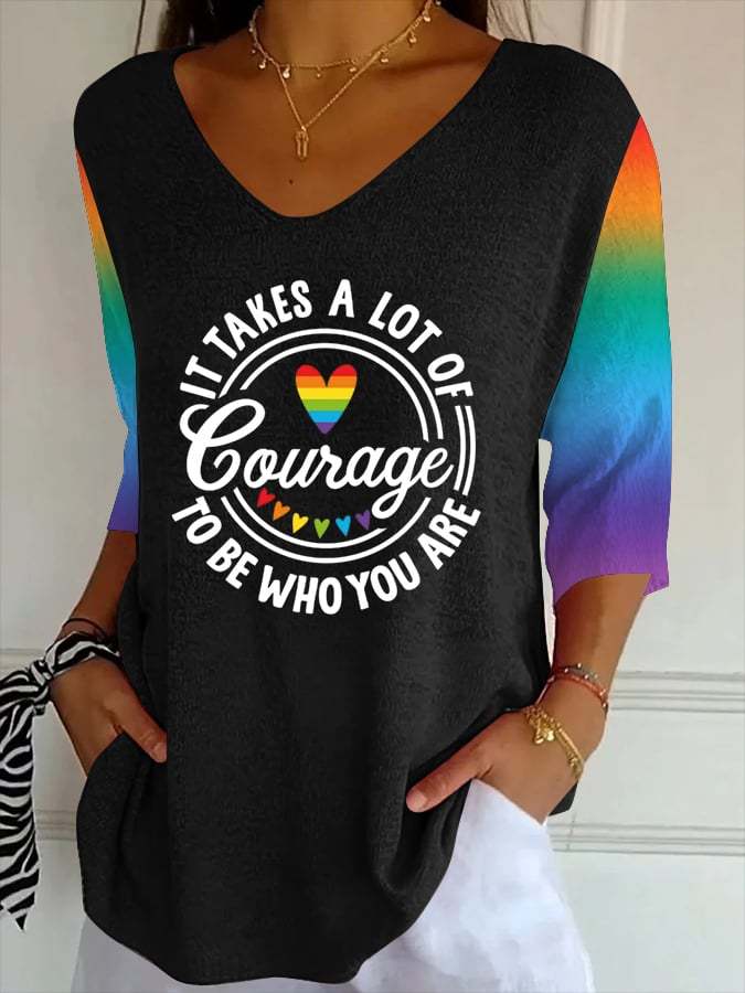 Women's Pride Month Printed Casual V Neck T-Shirt