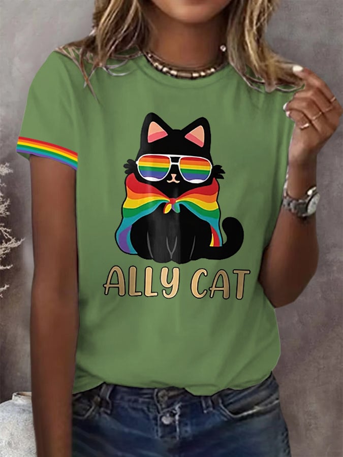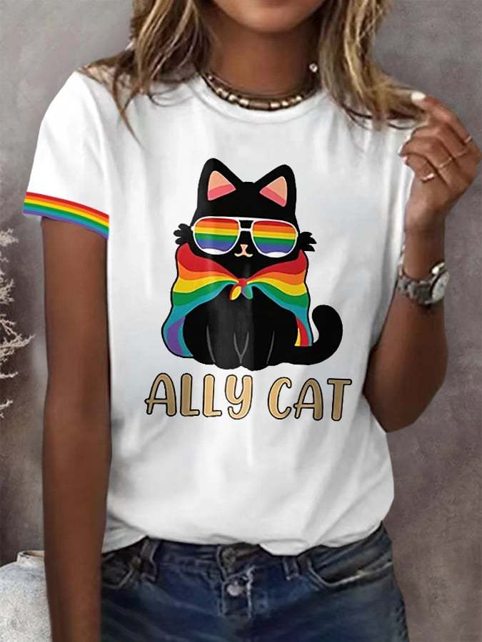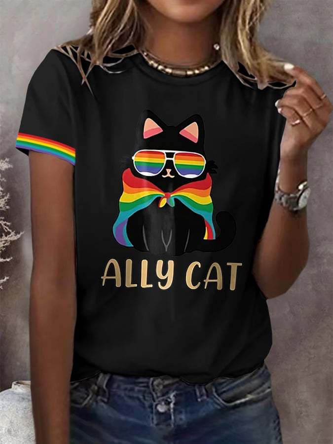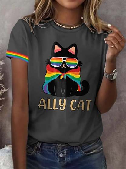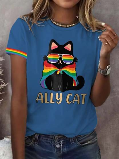 Women's Pride Month Rainbow Ally Cat print Short Sleeve T-Shirt