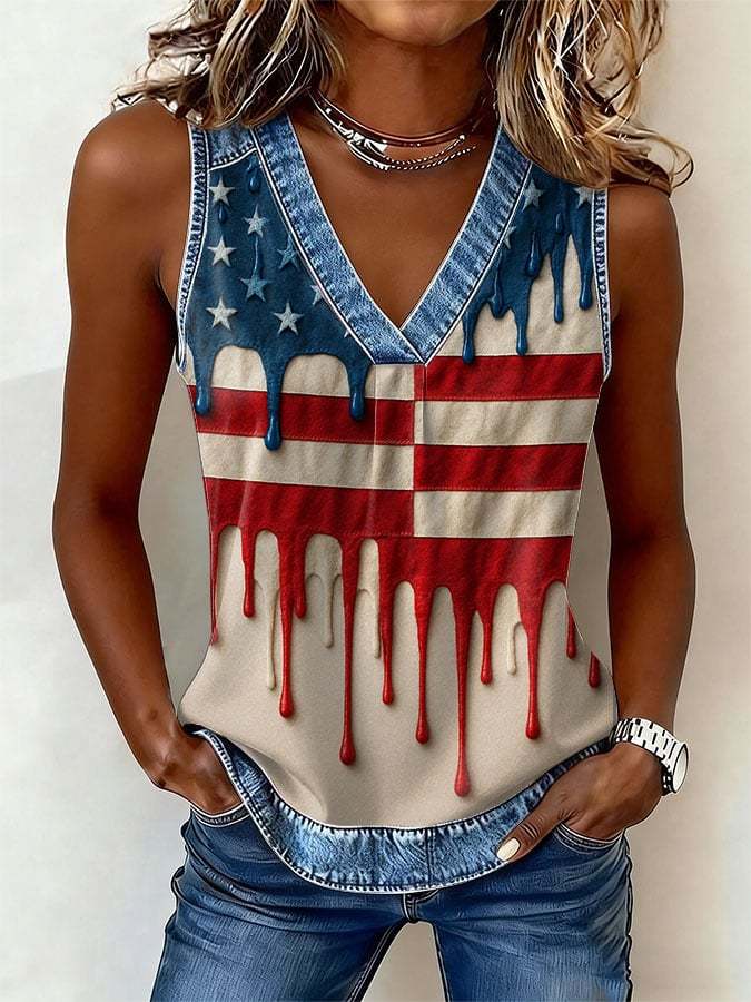 Women's Printed Denim Patchwork Print Top